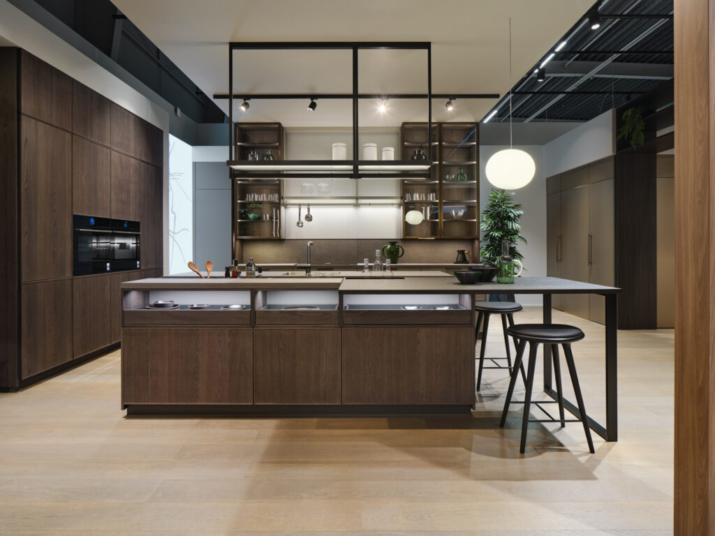 Cuisine façade placage bois , plan de travail de l’ilot assorti
